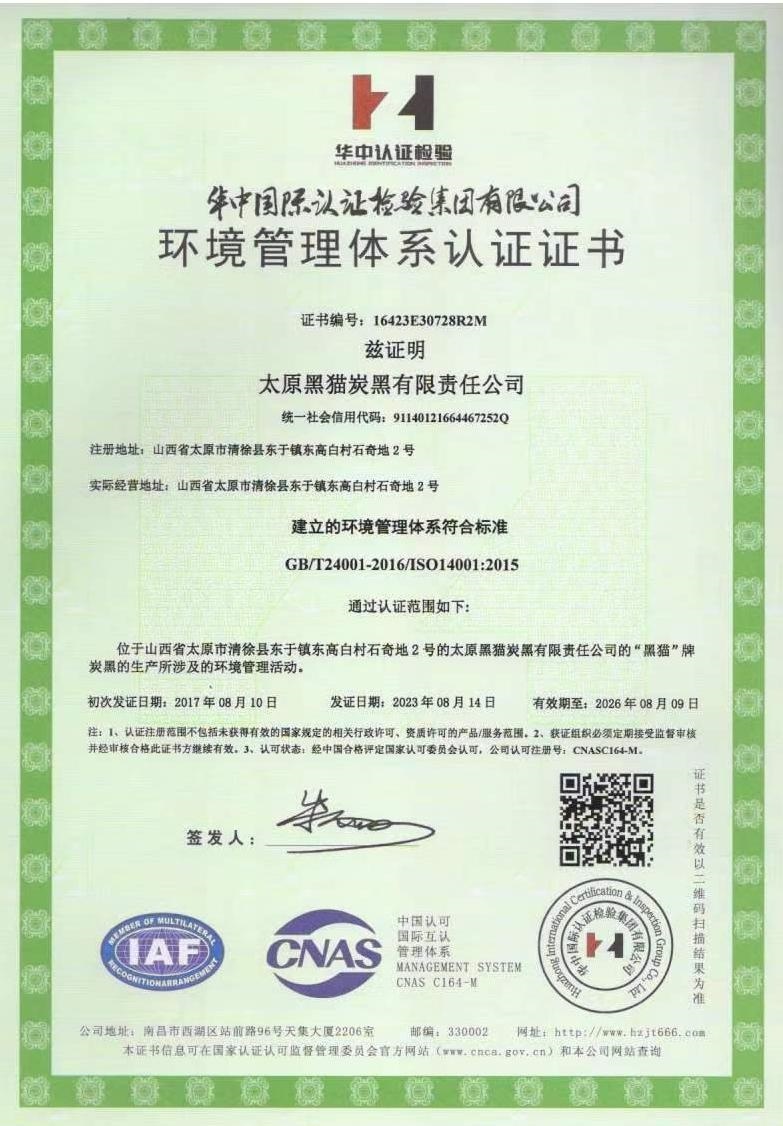 太原黑猫炭黑有限责任公司资格证书