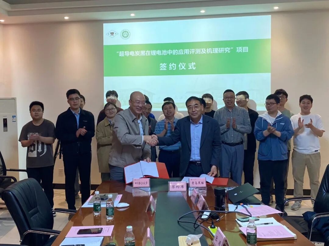 4月22日上午,青岛黑猫研究院与四川轻化工大学材料科学与工程学院在四川轻化工大学汇东校区材料学院楼举行产学研合作签约仪式。四川轻化工大学融合办公室主任、科技处处长张颖,四川轻化工大学材料科学与工程学院院长金永中教授、副院长罗宏教授、陈建教授等相关教师团队,青岛黑猫研究院负责人王宏、正高级工程师聂绪建及相关研发人员出席仪式。 张颖代表四川轻化工大学和材料科学与工程学院对青岛黑猫研究院的到来表示热烈欢迎,随后介绍了四川轻化工大学材料科学与工程学院学科基本情况和科研实力。青岛黑猫研究院研发团队观看了材料科学与工程学院宣传片,参观了实验室,青岛黑猫研究院研发项目负责人就青岛黑猫研究院基本情况及近年研发发展状况展开介绍。 会上,双方签订“超导电炭黑在锂电池中的应用评测及机理研究”项目合作协议,共同开展黑猫国产超导电炭材在新能源领域的开发及应用布局,助力黑猫加速实现产业转型升级。 金永中对合作协议签署表示衷心祝贺,并指出本次洽谈签约是全面推进产学研融合校企合作的重要体现,学院将深度结合黑猫当下发展需求,进一步促进双方在行业、产业和学校人才培养高质量发展,为企业提供点对点产学研对接服务。 王宏表示,希望通过此次合作签约,双方建立紧密的合作关系,实现优势互补、资源共享。未来,将以此次合作为起点,充分发掘和利用双方各自领域的优势资源,紧贴不同行业碳材料产业发展科技需求,力争取得更多技术合作成果,共同书写合作发展、携手共赢的新华章!