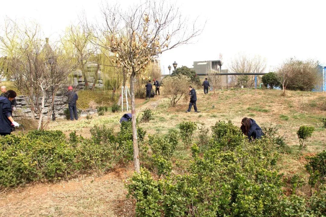 在专业人员指导下,全体党员分组在公司东假山区、果园区及党群中心后区进行植树补栽、修剪养护和环境清理工作。领导干部率先垂范,挥锹培土、疏枝修剪,党员群众协同攻坚,铁锹破土声、枝剪咔嚓声、号子呼应声交织成一首生动的“春日绿色协奏曲”。经过两小时奋战,三大区域环境焕然一新,绿化品质显著提升。此次活动以“党建红”引领“生态绿”,既美化了厂区环境,又锤炼了队伍作风,为打造花园式工厂注入红色动能。