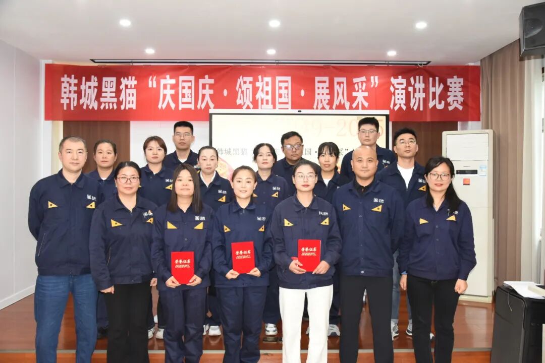 企业活动 强化员工责任担当,提高职工履职尽责能力,黑猫股份不断创新技术、优化品质、提高企业核心竞争力,多角度、全方位地展现黑猫人干事创业精气神,以更高的政治站位,埋头苦干,砥砺奋进,为创建世界一流炭黑企业贡献黑猫力量。 9月26日下午,韩城黑猫举办“迎国庆·颂祖国·展风采”主题演讲比赛。 比赛现场,12名参赛选手紧扣主题,结合岗位经历与公司发展故事,以热情生动的语言讲述对祖国的热爱和对岗位的坚守,展现出韩城黑猫昂扬向上的精神风貌。评委们从演讲内容、语言表达、情感传递等维度综合评分,最终评选出一、二、三等奖。活动还设置国庆知识抢答环节,在场职工踊跃参与,积极作答,活跃了现场氛围。活动最后,全体职工起立共唱《歌唱祖国》,激昂旋律响彻全场,抒发韩城黑猫人对祖国的美好祝福。 韩城黑猫将以此次活动为新起点,将祖国的热爱化为实际行动,为企业高质量发展贡献更大力量!