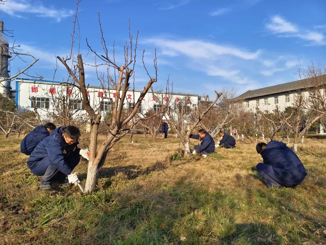 12月9日,邯郸黑猫开展树木冬季刷白防护工作,为厂区及周边树木统一穿上“防护衣”。