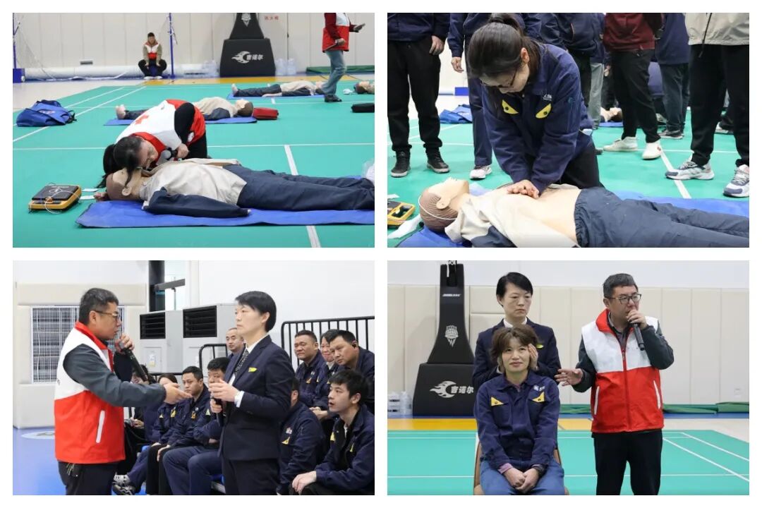 培训中,红十字会专业讲师结合真实案例,就心梗、脑梗的早期识别与应对措施,心肺复苏、AED操作、创伤急救实操技能等内容展开讲解。在模拟演练环节,职工们分组进行实操练习,从判断意识、呼叫救援到胸外按压、人工呼吸,每个步骤都严谨认真,讲师逐一纠正动作,确保操作规范到位。现场互动频繁、气氛热烈,职工们在实践中加深对急救知识的理解,切实提升自救互救能力与安全责任意识。